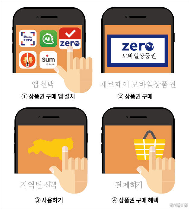 각 지자체(구청) 지역내에서 수수료없는 '제로페이' 가맹점에서 제로페이 사용 방식에 따라 사용 가능 (6월말까지 사용)