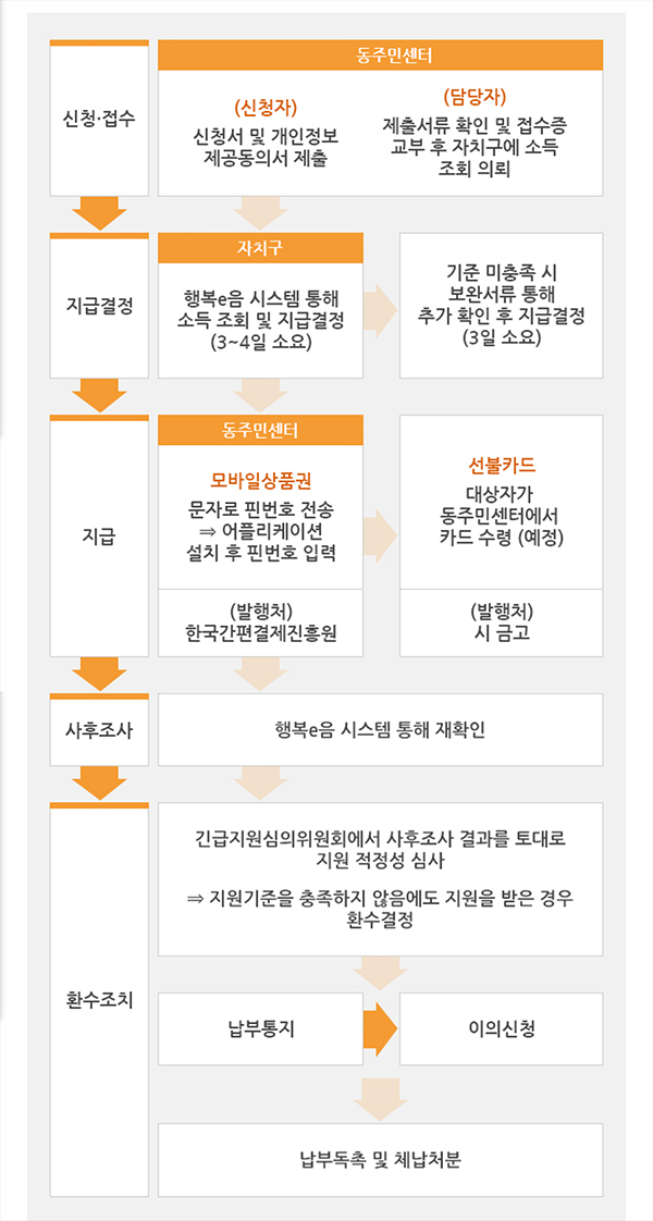 이번에 지원되는 긴급지원비는 1) 선불카드, 2) 서울사랑상푼권 모두