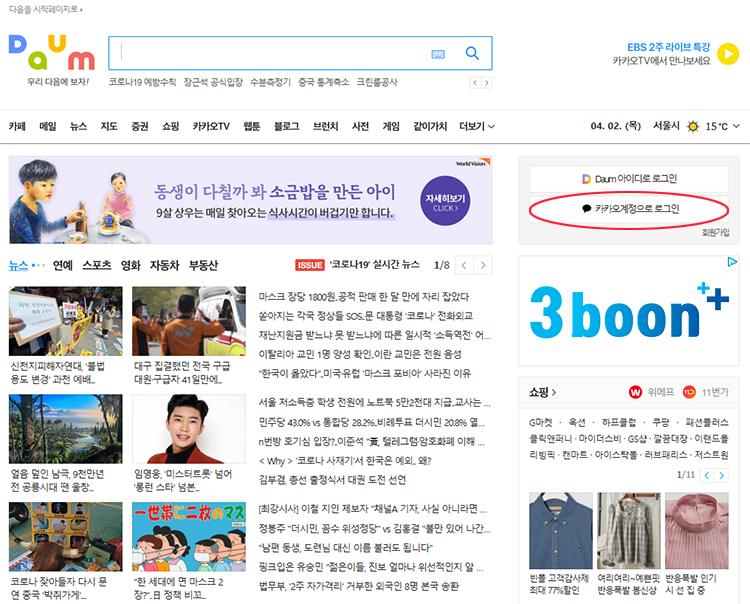 이제 다시, 처음으로 돌아가서 다시 카카오계정으로 통합하기를 진행하면 된다.