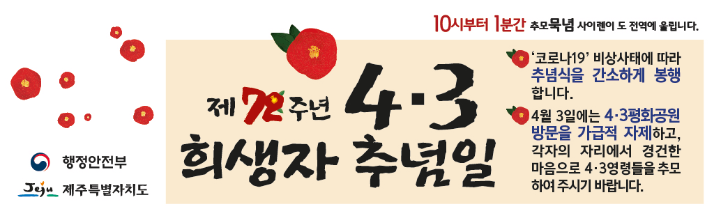 오늘 4월 3일은 남도의 땅 제주의 제72주년 [4.3 희생자 추념일]입니다.
