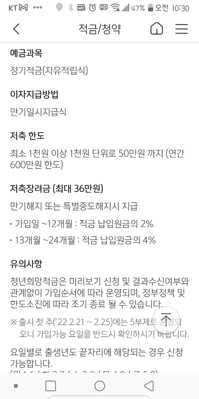 2월 21일(월)부터 청년희망적금 가입신청이 시작되었습니다.
